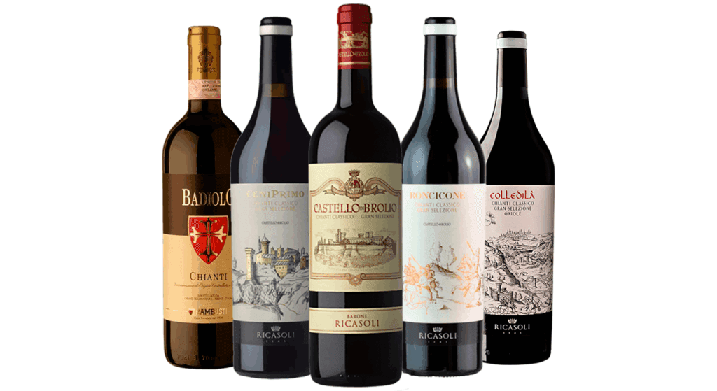 Rótulos ligados à tradição toscana da Sangiovese, com caráter elegante, boa acidez